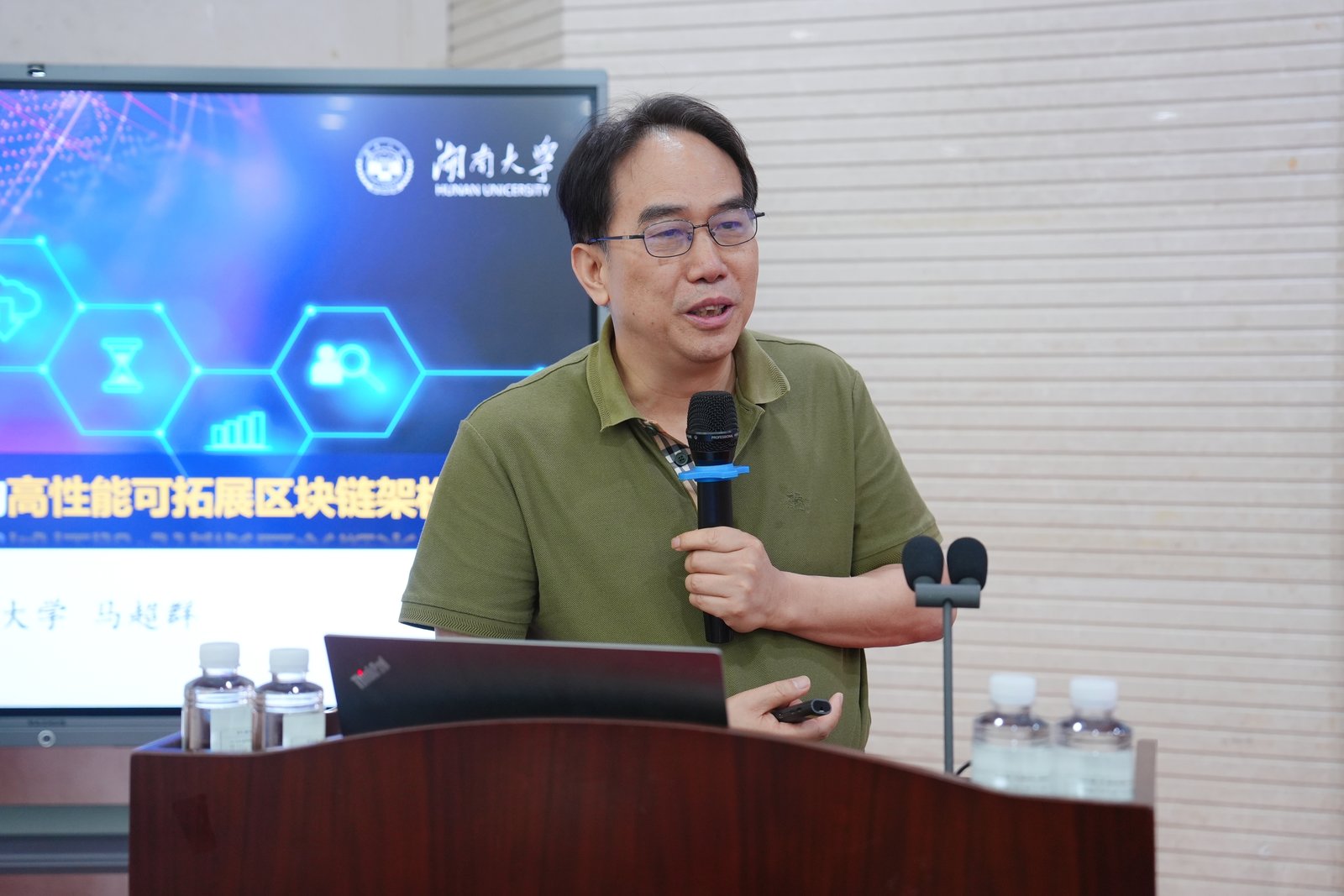 The forum commenced on the morning of the 13th at the Business School of Hunan University. Academician Zheng Zhiming of the Chinese Academy of Sciences and professor at Beihang University delivered a keynote speech. Opening remarks were given by Cao Shengyuan, Deputy Party Secretary and Secretary for Discipline Inspection Commission of Hunan University; Tang Huazhong, Vice President of CSIAM and professor at Peking University; and Deng Xiaotie, Chair of the CSIAM Blockchain Professional Committee, Member of Academia Europaea, and Chair Professor at Peking University. The opening ceremony was attended by Yang Zhi, Dean of the Business School of Hunan University; Zhang Yuejun, Party Secretary of the Business School of Hunan University; and Ma Chaoqun, Director of the Key Laboratory of High-Performance Distributed Ledger Technology and Digital Finance. The event was chaired by Cheng Yukun, Secretary-General of the CSIAM Blockchain Professional Committee.